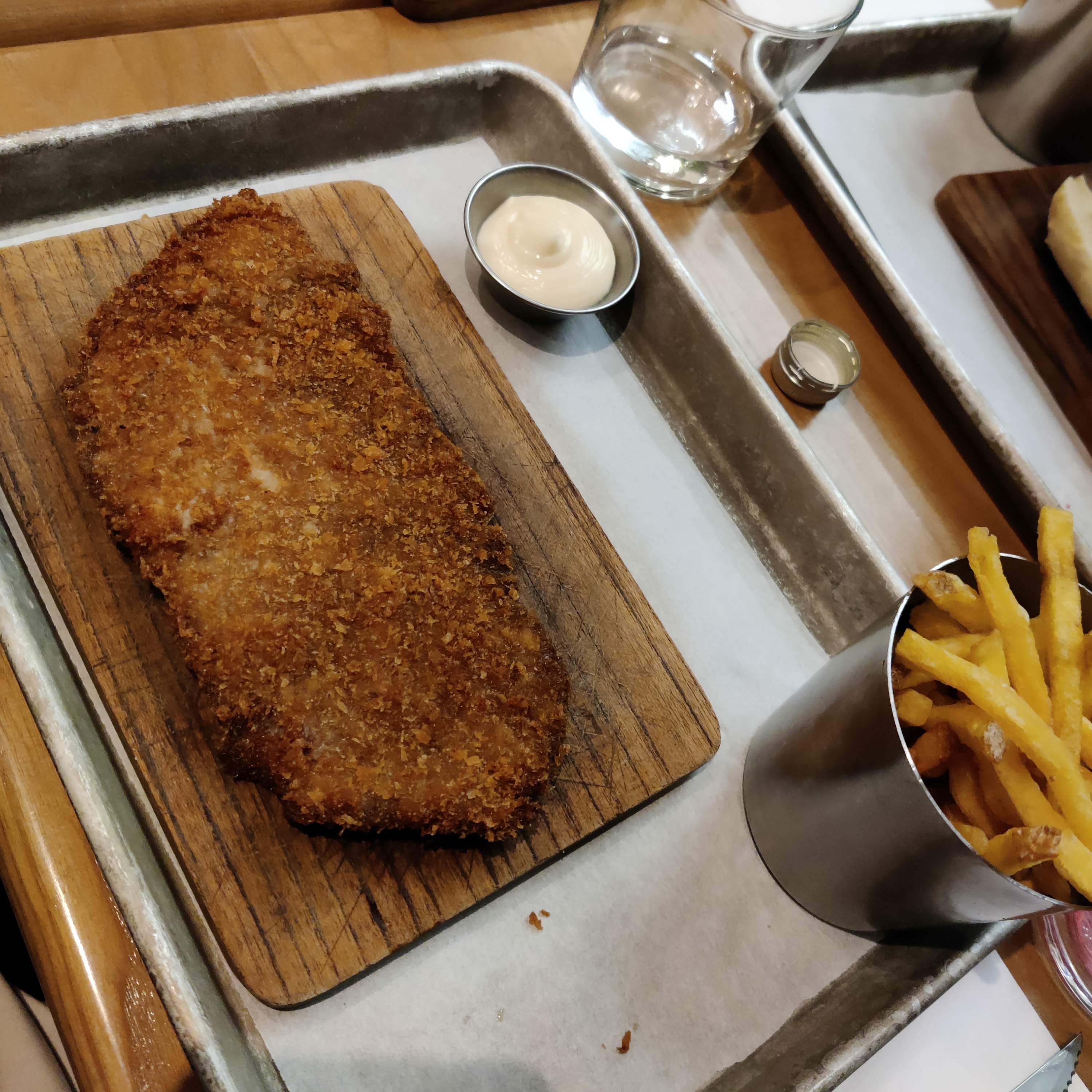 Viande très bonne mais mention spéciale à la viande panée : très tendre, pas du tout sèche, assaisonnement vraiment parfait et panure croustillante !
